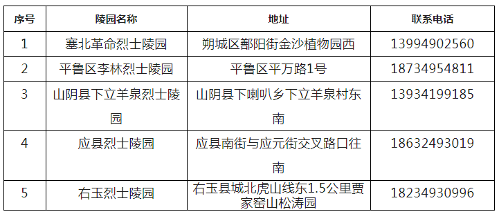 朔州市烈士陵園地址及聯(lián)系方式